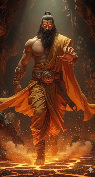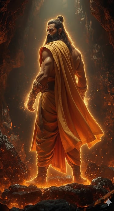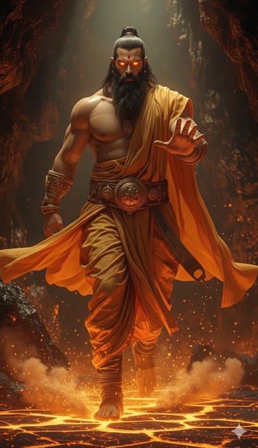 He wandered across realms unknown, his feet touching soils that remembered forgotten gods, his words weaving together the hymns of the future. Mountains bowed to listen. Rivers paused mid-flow. He didn’t command reverence—it bloomed naturally, like light from flame. Atop the crystalline cliffs of Vaijayanta Parvata, he forged wonders with his breath alone—machines that did not conquer but healed, artifacts that sang memories into matter.