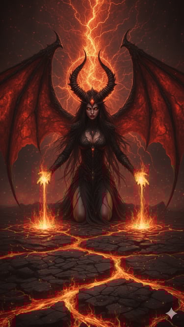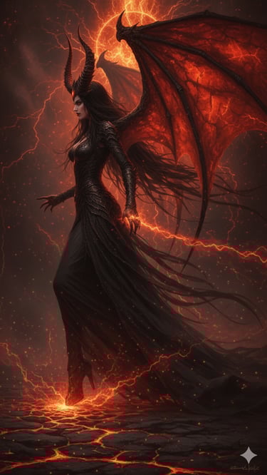 Her domain and influence extend far beyond the physical. She is sovereign of shadow, fear, and soul-enslavement, her reach spilling into dreams, nightmares, and the void between worlds. Wherever light weakens, her dominion strengthens; wherever courage cracks, her whisper enters. She dwells not in palaces or temples but in the silences between — in the empty corridors of dreams, in the corners of halls where candles flicker, in the unlit spaces between heartbeats. From these thresholds she emerges, her presence dissolving alliances, shattering unity, and corrupting certainty.